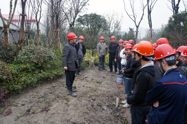 作為被杭州人事局授予的“杭州市大學生企業(yè)實訓基地”,公司一直為浙江理工大學、麗水職業(yè)技術(shù)學院等高校的大學生提供實踐學習的機會。今天的參觀,李總以中國·國際城景觀工程這一高標準的項目為范本,不但向同學們介紹了許多課本上學不到的園林設(shè)計知識,而且從另一個方面展現(xiàn)了公司對設(shè)計和施工高質(zhì)量、高規(guī)格的要求,可以說是給大家上了一堂生動的園林教學實踐課。