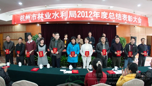 2月1日,杭州市林業水利局2012年度總結表彰大會順利召開,中共杭州市園林綠化工程有限公司支部五名黨員代表參加了會議。