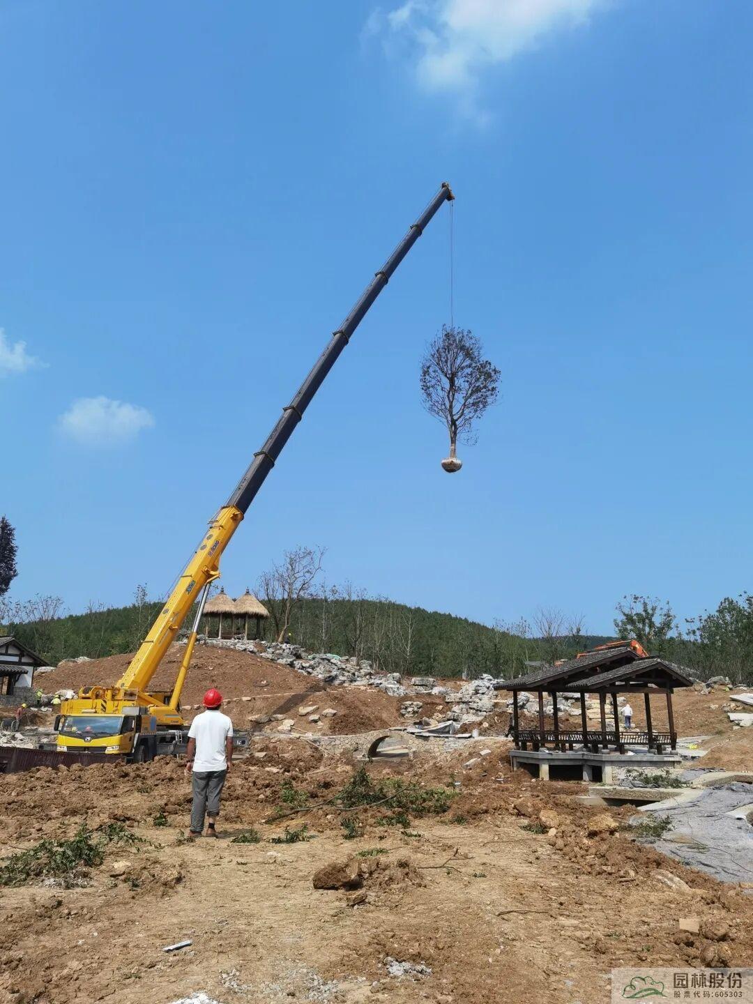 截止目前,杭州園已完成隱秀、湖畔精舍兩棟建筑背景喬木,茶園區域骨架樹和登山道銀杏林、背景喬木種植,接下來將進行灌木以及湖岸邊喬木種植。